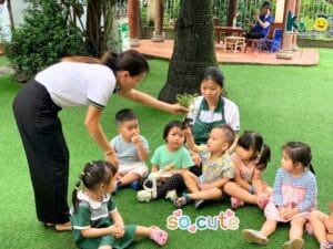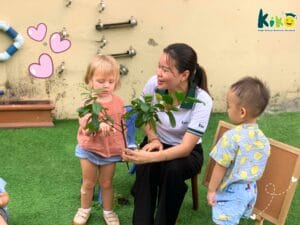🌿 Tuy nhiên, hoạt động học không chỉ dừng lại ở đó. Cả lớp chúng con đã cùng ra ngoài khám phá thế giới thực, nơi các con có thể trực tiếp nhìn, sờ, và chạm vào những chiếc lá, thân cây ngoài trời. Qua đó, các con hiểu rõ hơn về các bộ phận của cây, từ rễ, thân đến lá. Những bài học từ thực tế này không chỉ kích thích sự tò mò mà còn giúp các con tích lũy nhiều kiến thức hơn về thiên nhiên xung quanh.