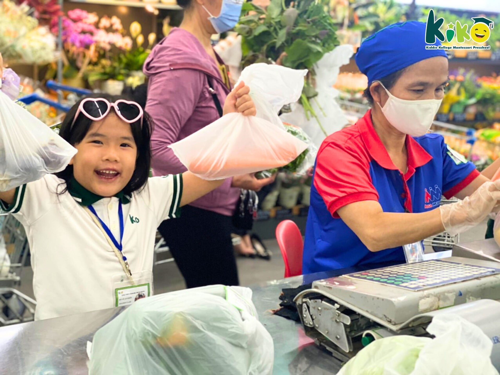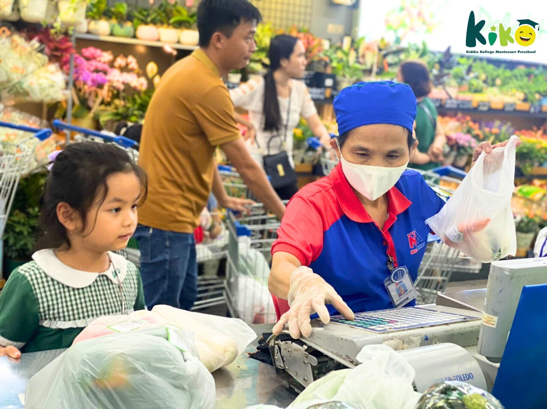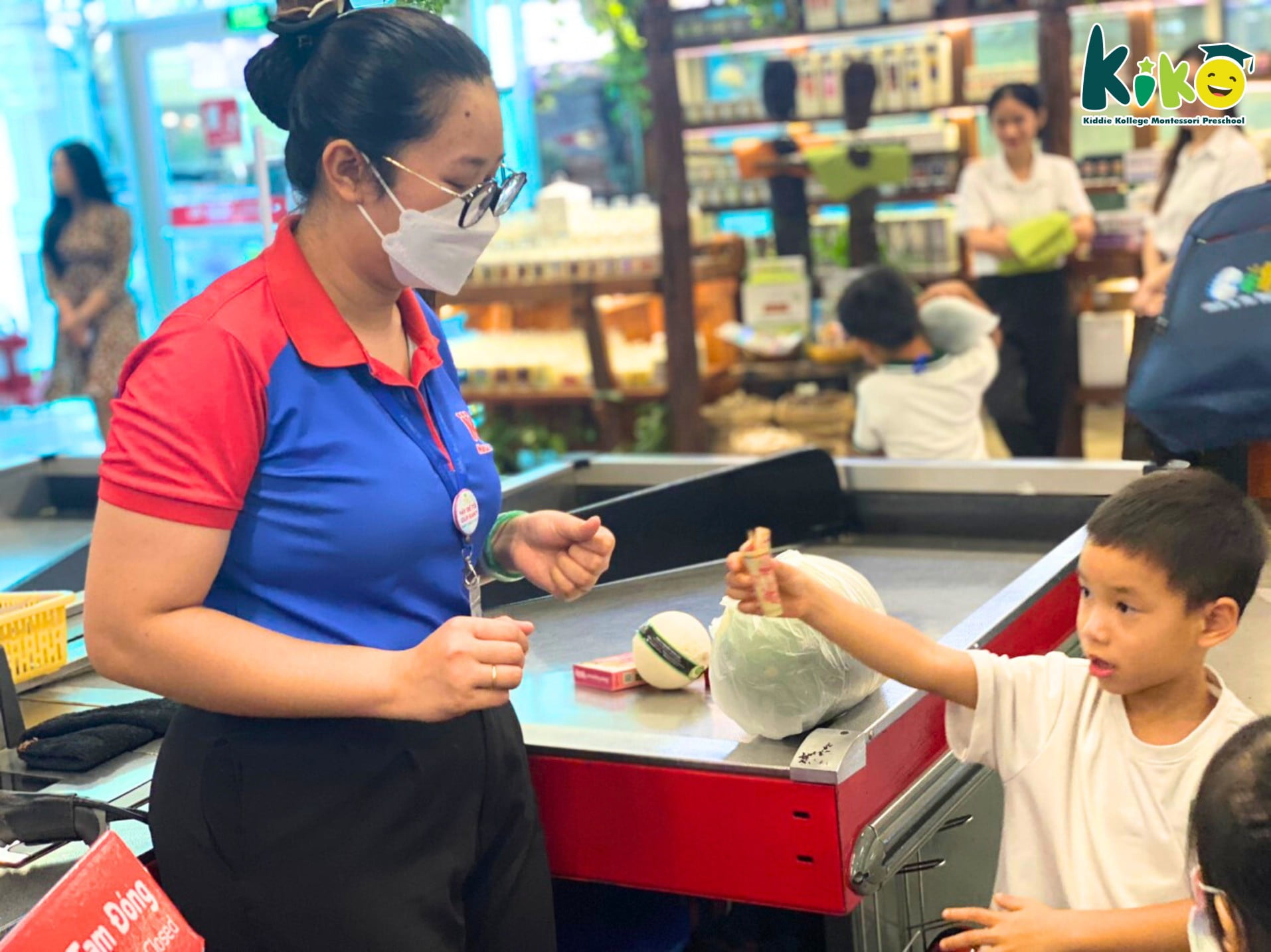 Trải nghiệm thực tế đã giúp các con rèn luyện các kỹ năng khi ở nơi công cộng, các kỹ năng chọn đồ, mua đồ, xếp hàng thanh toán và các bài học về tiền đó ạ