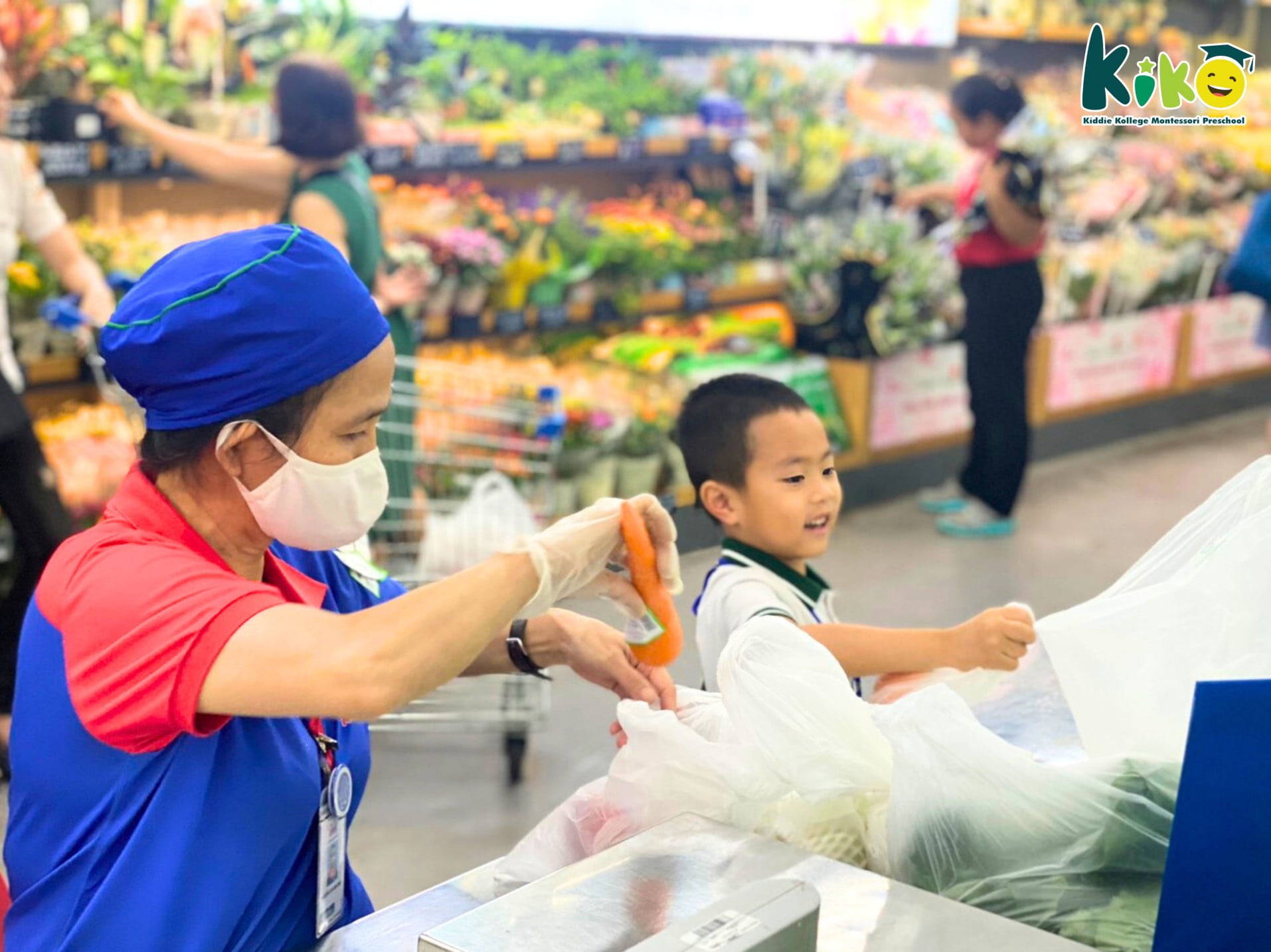 At the supermarket, we were introduced to various sections, from fresh produce and seafood to fast food, dairy products, and the beloved candy aisle. This was our favorite part!