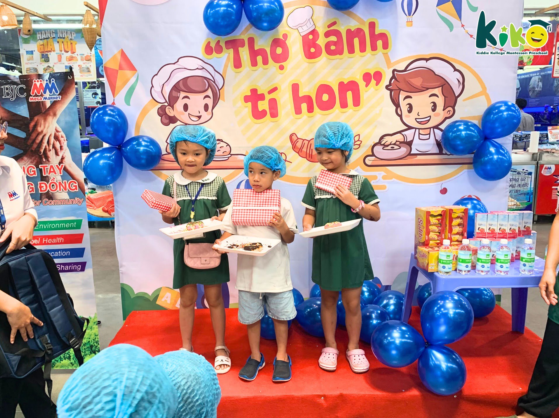 Tham gia cuộc thi làm bánh, chúng con được hóa thân thành những “thợ bánh tí hon” cùng làm bánh và thưởng thức ngay tại quầy ăn ạ.